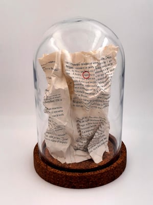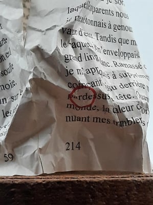 L'histoire se situe dans un paysage montagneux : les pages froissées accolées évoquent l'aspect du rocher. Au cœur du volume formé par les pages, à peine visible, se tient un véritable caillou symbolisant la montagne.