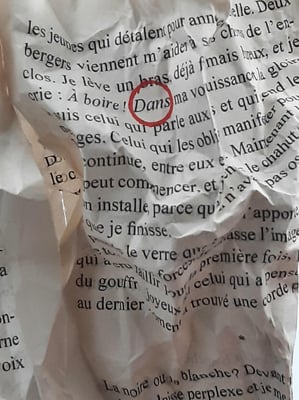 Le mot « Dans » ne faisant pas partie de la réplique « À boire ! », il ne devrait pas être en italique. Sans son tiret, « par-dessus » devient un manteau. Le verbe dans « Tu en sûr ? » est assurément manquant – « Tu es sûr ? » conviendrait aussi.